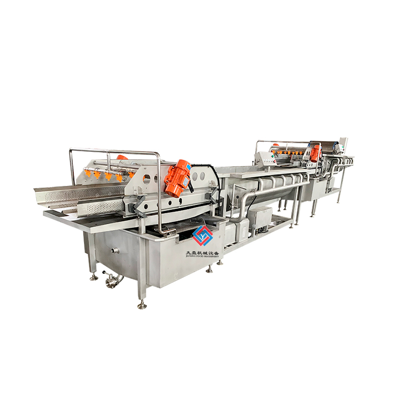 凈菜加工成套生產(chǎn)線是針對(duì)多種的蔬菜進(jìn)行清洗和加工處理的,可以將蔬菜表面的泥土進(jìn)行清洗干凈,還能夠?qū)κ卟诉M(jìn)行農(nóng)殘?zhí)幚恚梢詫⑹卟说霓r(nóng)藥進(jìn)行分解,提升蔬菜的品質(zhì)程度,通過(guò)清洗之后的蔬菜輸送到震動(dòng)篩進(jìn)行麗水處理,能夠?qū)⑹卟松洗蟛糠值乃譃r干,之后輸送到風(fēng)干設(shè)備上可以將蔬菜的表面水分更加充分的蒸發(fā),之后再進(jìn)行整理過(guò)后可以進(jìn)行真空包裝處理,經(jīng)過(guò)真空包裝處理之后的蔬菜可以延長(zhǎng)保鮮時(shí)間,建議填充質(zhì)量的氮?dú)饪梢允贡ur效果好。